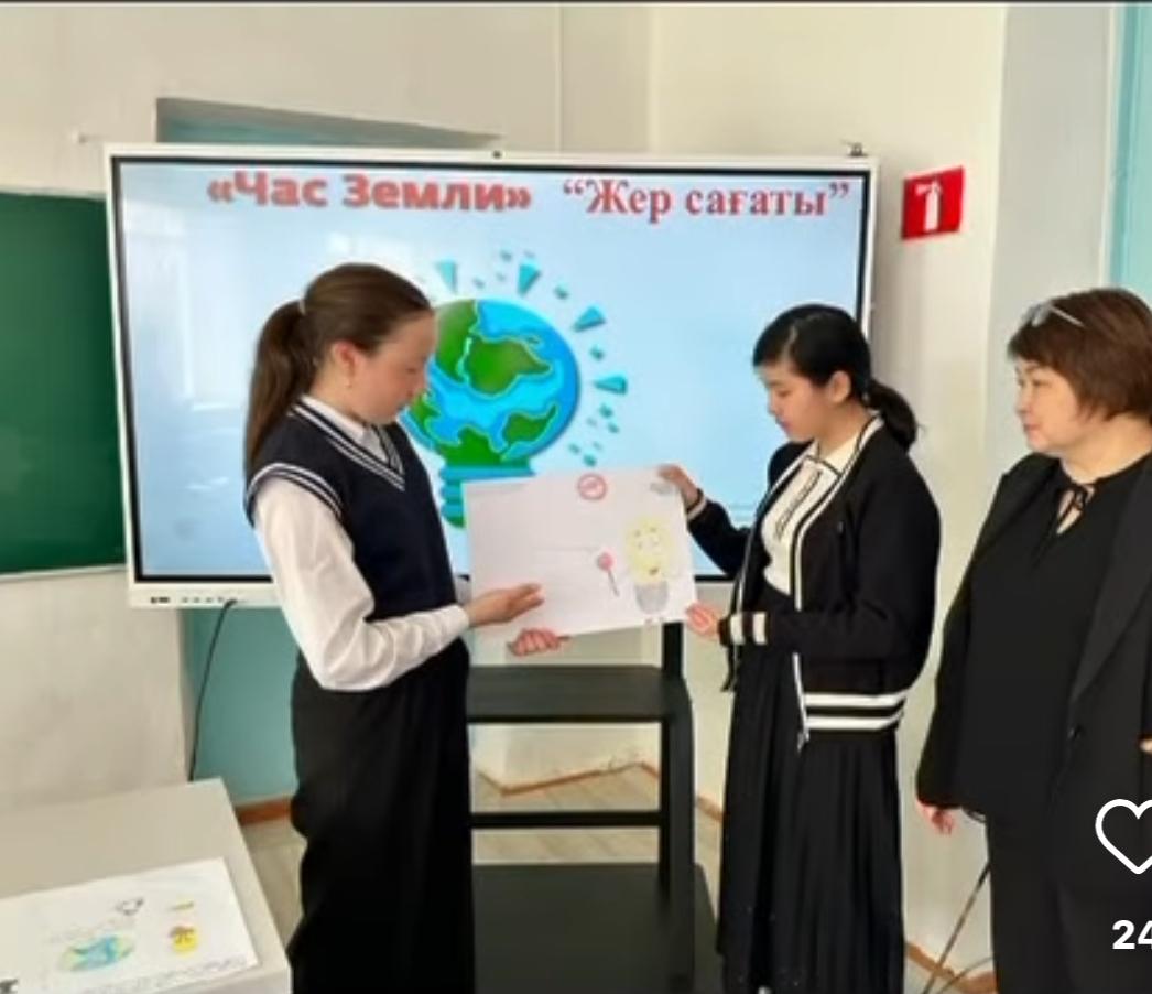 ✔ Оқушылар үшін «Жер Сағаты» акциясының маңыздылығын түсіндіретін ақпараттық іс-шаралар ұйымдастырылды (сабақтар, сынып сағаттары, дәрістер).