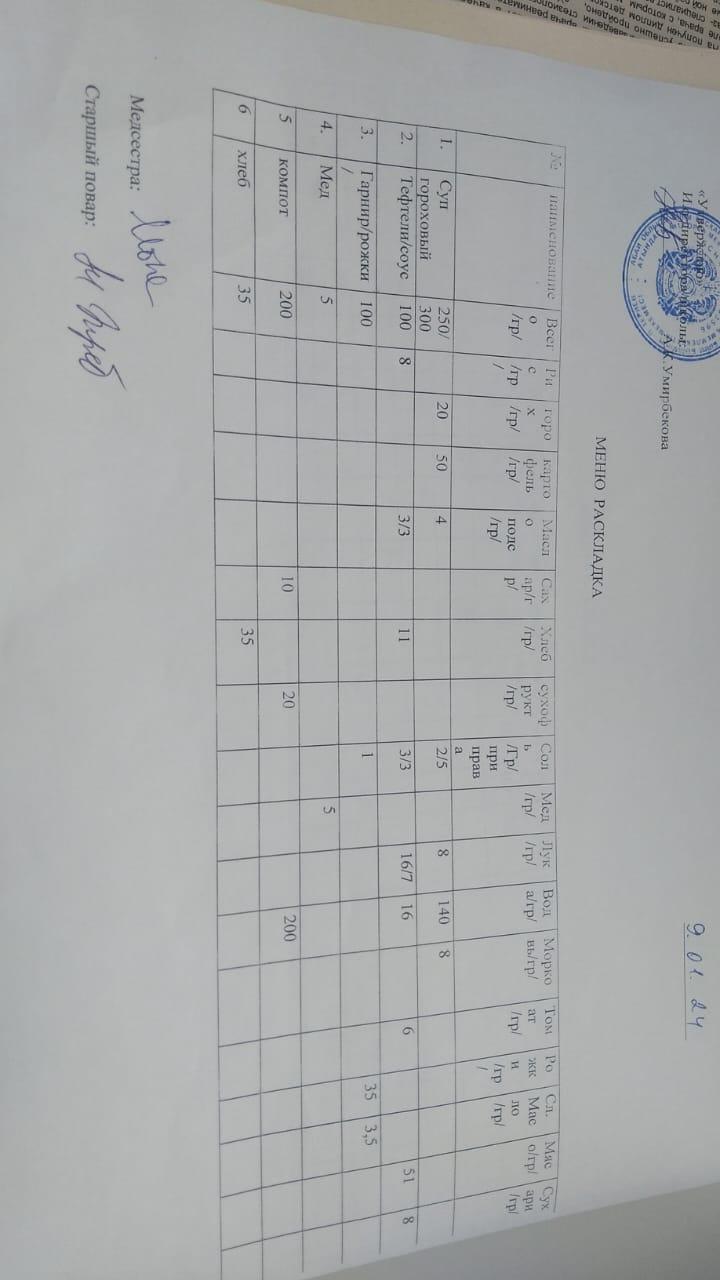 Меню на 9.01.2024 г. » Абай облысы білім басқармасының Жарма ауданы білім бөлімінің "П.Теряев атындағы №17 орта мектебі" КММ