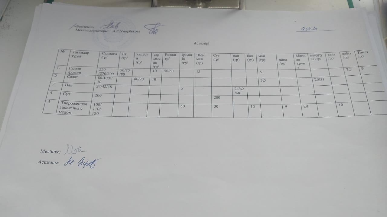 Меню на 9.04.2024 г. » Абай облысы білім басқармасының Жарма ауданы білім бөлімінің "П.Теряев атындағы №17 орта мектебі" КММ