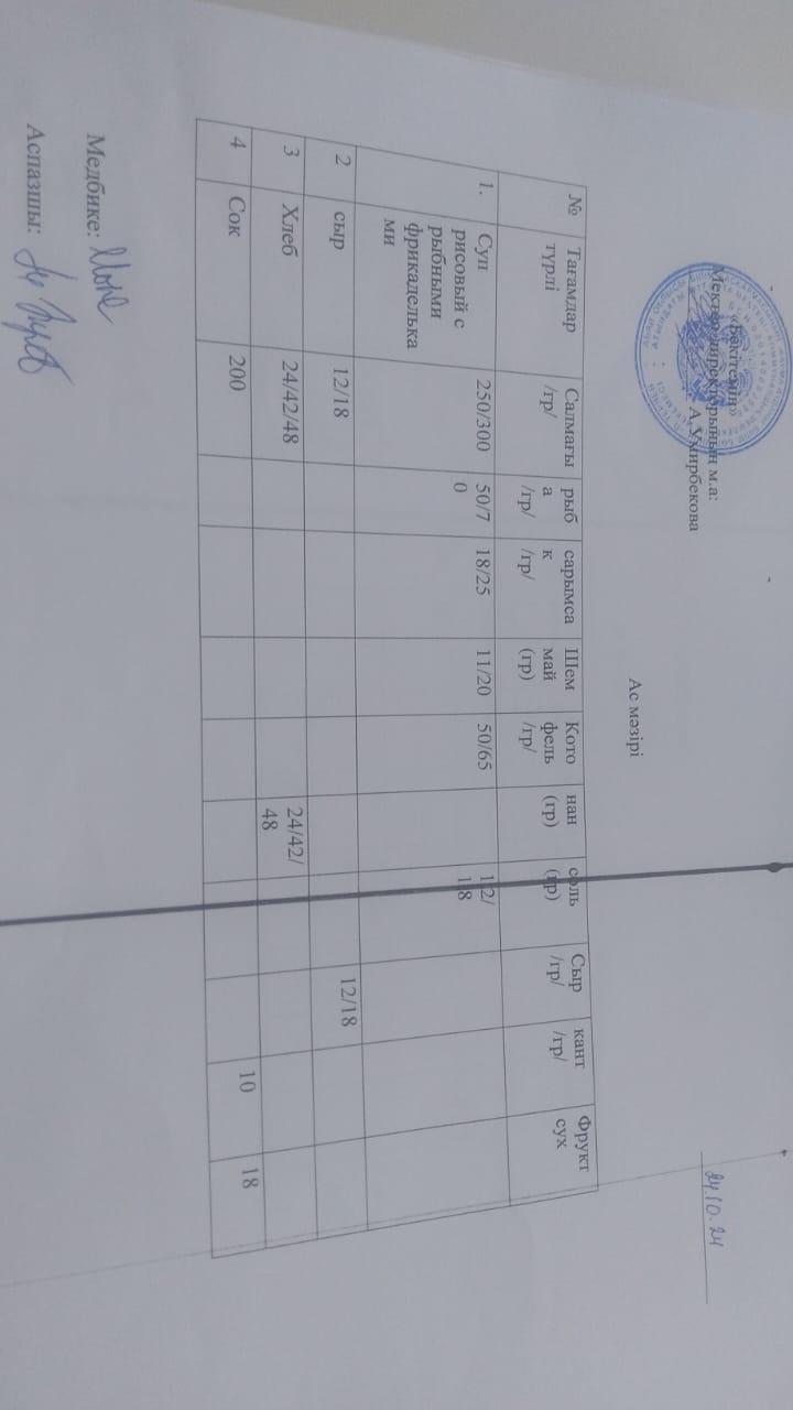 Меню на 24.10.2024 г. » Абай облысы білім басқармасының Жарма ауданы білім бөлімінің "П.Теряев атындағы №17 орта мектебі" КММ