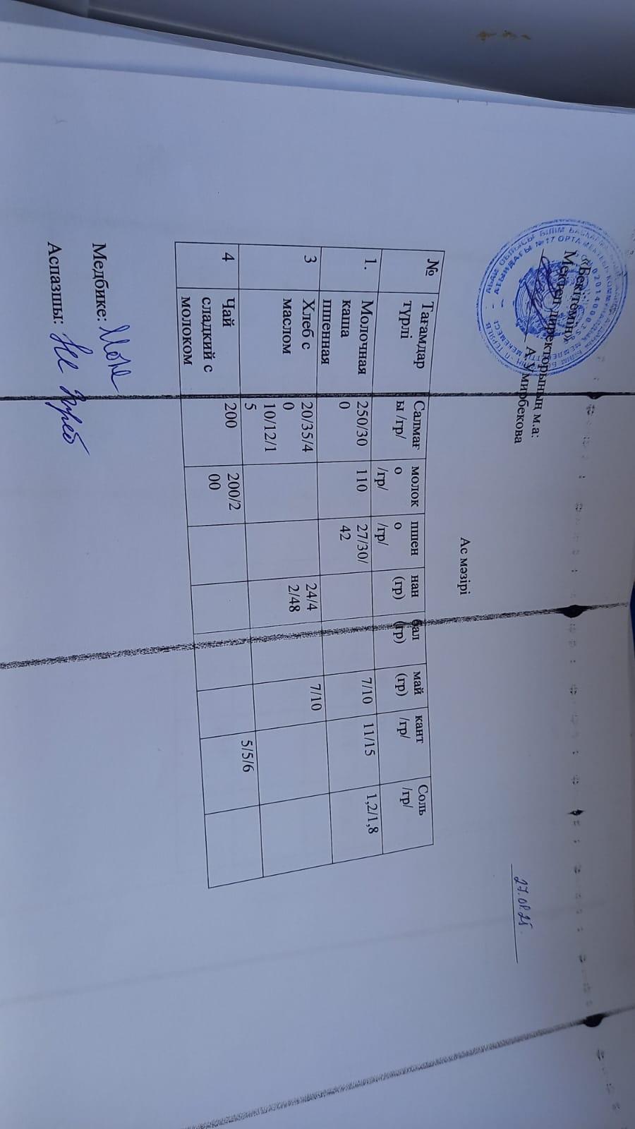 Меню на 27.01.2025 г. » Абай облысы білім басқармасының Жарма ауданы білім бөлімінің "П.Теряев атындағы №17 орта мектебі" КММ