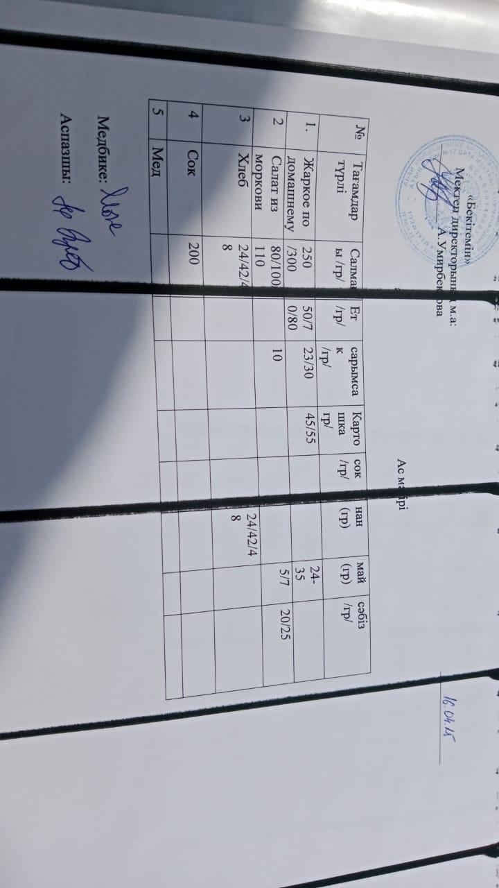 Меню на 16.04.2025 г. » Абай облысы білім басқармасының Жарма ауданы білім бөлімінің "П.Теряев атындағы №17 орта мектебі" КММ